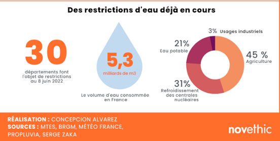– Quelles quantités d’eau sont prélevées et consommées par la population, les usines et l’agriculture ?, Le Monde, juin 2023